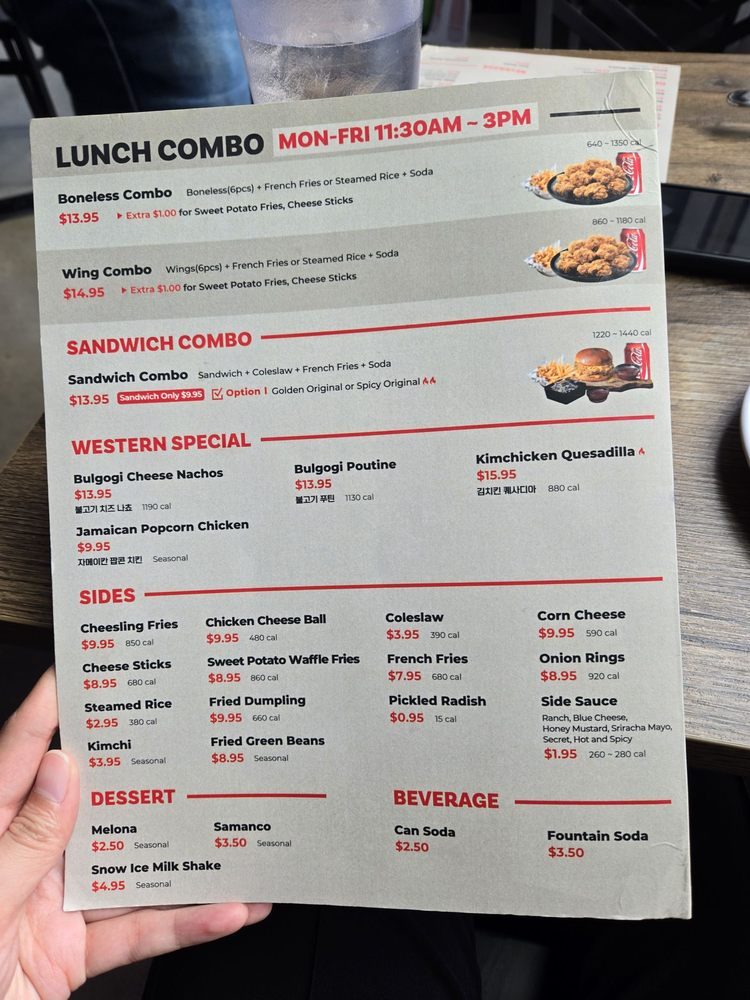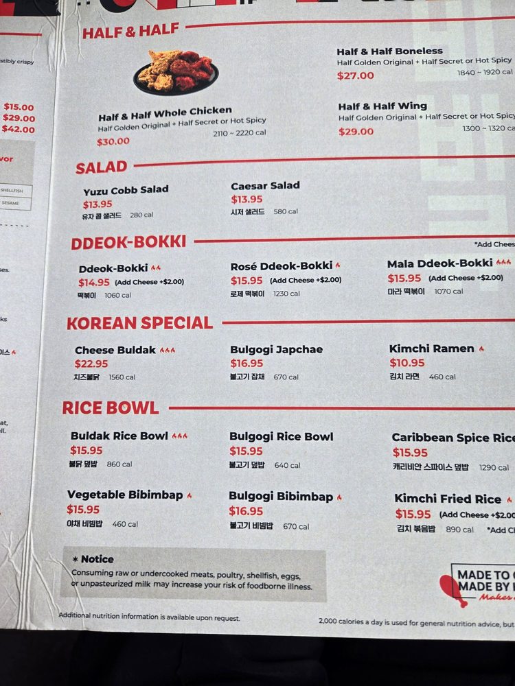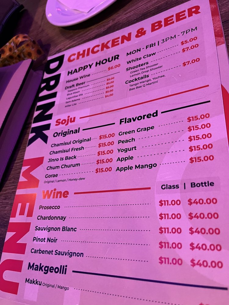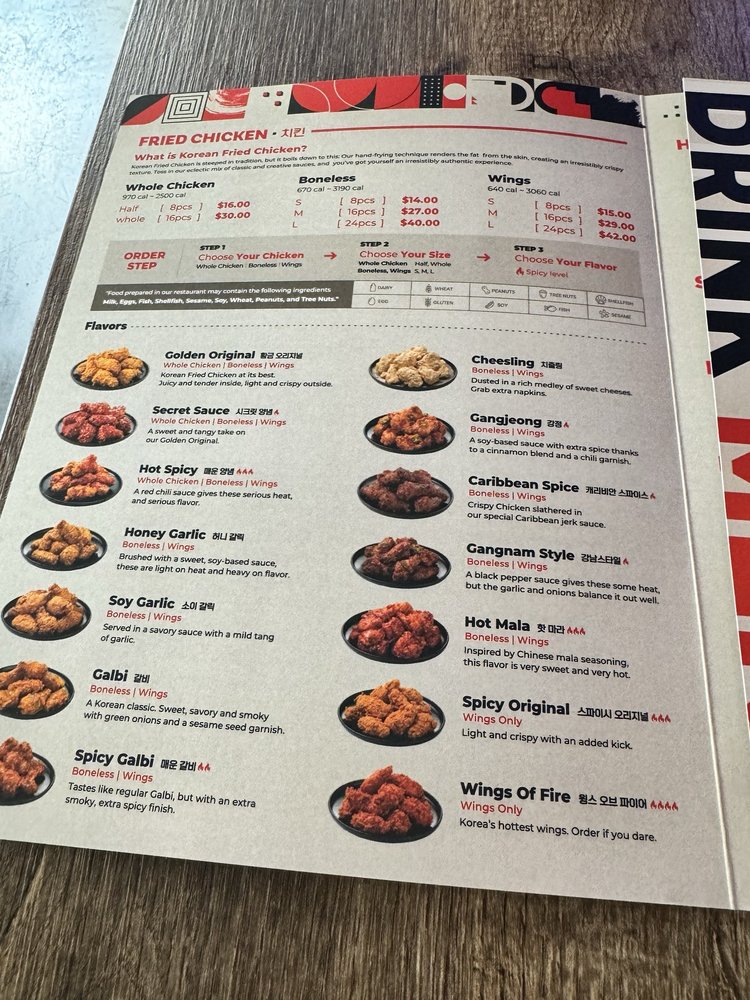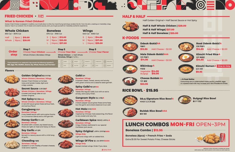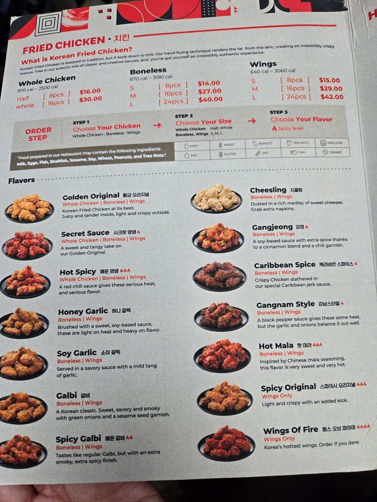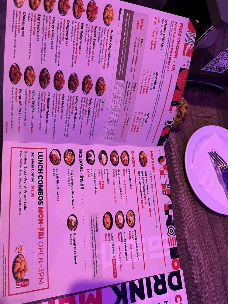The menu is a delightful exploration of Korean flavors, boasting specialties like Bulgogi Japchae, a savory sweet dish of glass noodles, and Cheese Buldak, intense and cheesy chicken with a fiery kick. Fans rave about the crispy Caribbean Spice Wings and the classic Galbi Wings, famed for their sweet and smoky essence.